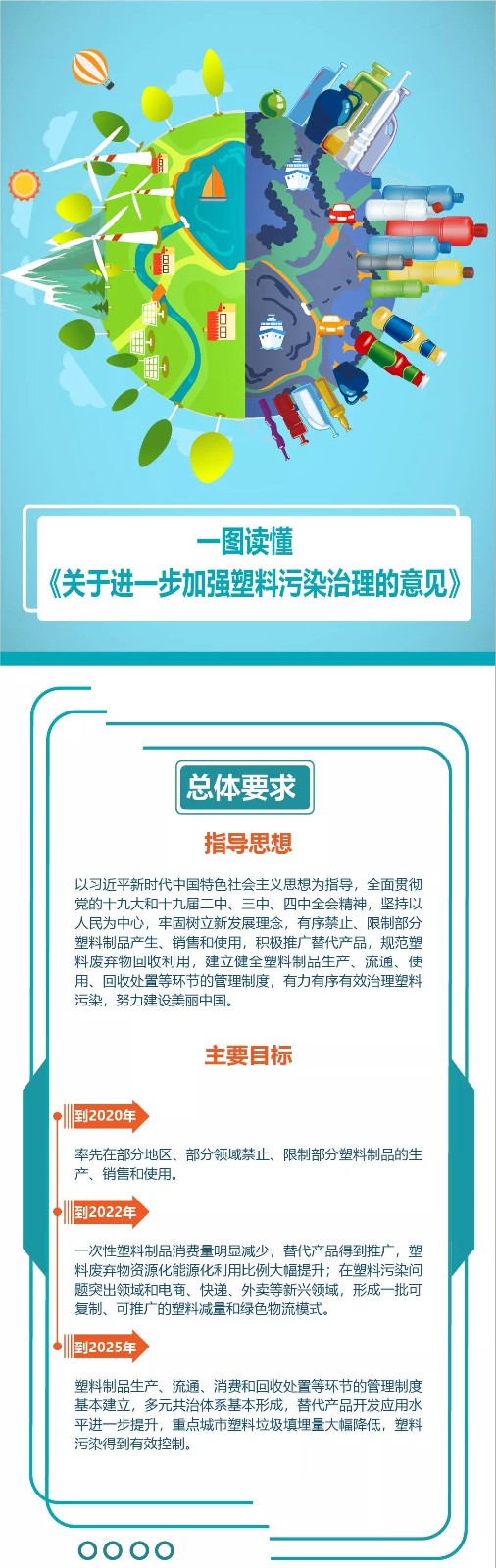 国家发展改革委、生态环境部19日公布《关于进一步加强塑料污染治理的意见》,到2020年底,我国将率先在部分地区、部分领域禁止、限制部分塑料制品的生产、销售和使用,到2022年底,一次性塑料制品的消费量明显减少,替代产品得到推广。